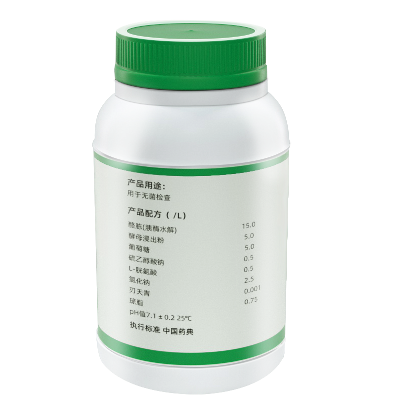 稱取本品 29.25g,加熱攪拌溶解于 1000ml 純化水(shuǐ)中,分裝适宜容器(qì) ,其裝量與容器(qì)高(gāo)度的比例應符合,培養結束後培養基氧化層 ( 粉紅色 ) 不超過培養基深度的 1/2 。121℃高(gāo)壓滅菌 15 分鍾迅速冷卻。在供試品接種前,培養基氧化層高(gāo)度不得(de)超過培養基深度的 1/5 。否則,須經100℃水(shuǐ)浴加熱至粉紅色消失( 不得(de)超過 20 分鍾 ),迅速冷卻 ,隻限加熱一次,并應防止被污染。